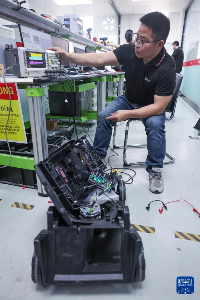 3月26日,在位于嘉興南湖區(qū)余新鎮(zhèn)的浙江亞特電器股份有限公司測(cè)試車(chē)間內(nèi),工作人員在對(duì)園林工具進(jìn)行測(cè)試。