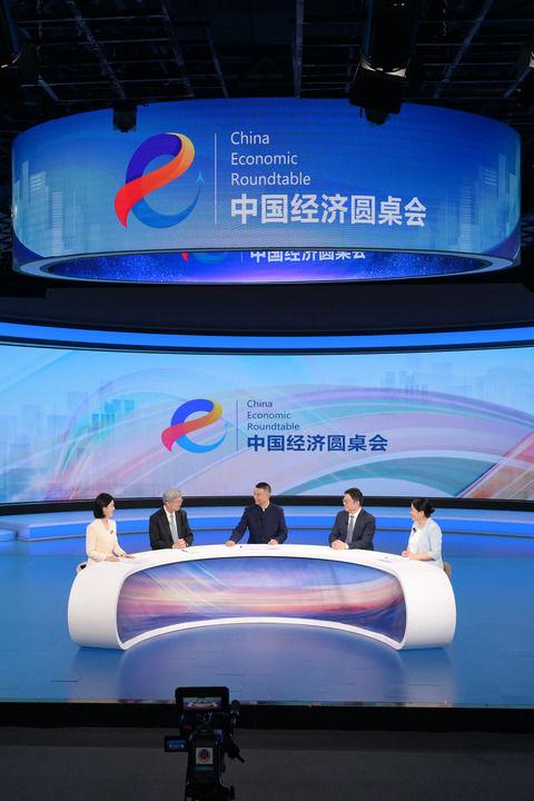 嘉賓們在第十五期“中國經(jīng)濟(jì)圓桌會(huì)”大型全媒體訪談節(jié)目錄制現(xiàn)場交流發(fā)言。新華社記者 李賀 攝