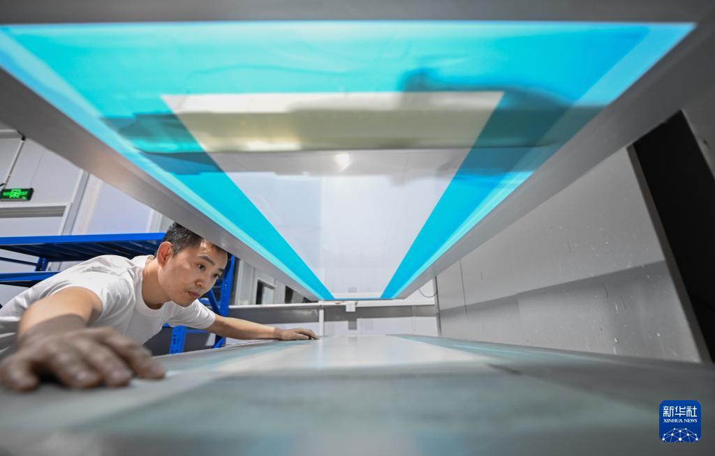 4月24日,在速力復(fù)合材料有限公司的生產(chǎn)車間內(nèi),工人在檢測生產(chǎn)的水翼產(chǎn)品。2024年,速力復(fù)材成為巴黎奧運(yùn)會新增的風(fēng)帆水翼賽事唯一指定生產(chǎn)商。