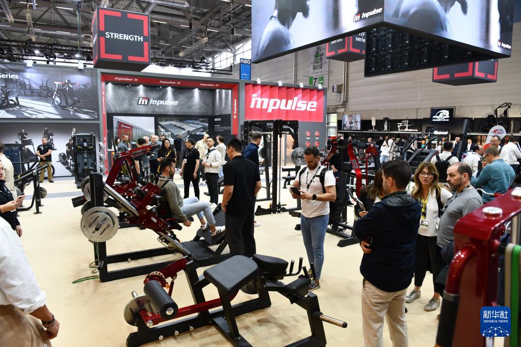 參觀者在2025年德國科隆健身健美及康體設(shè)施博覽會英派斯展位上體驗(yàn)(4月10日攝)。
