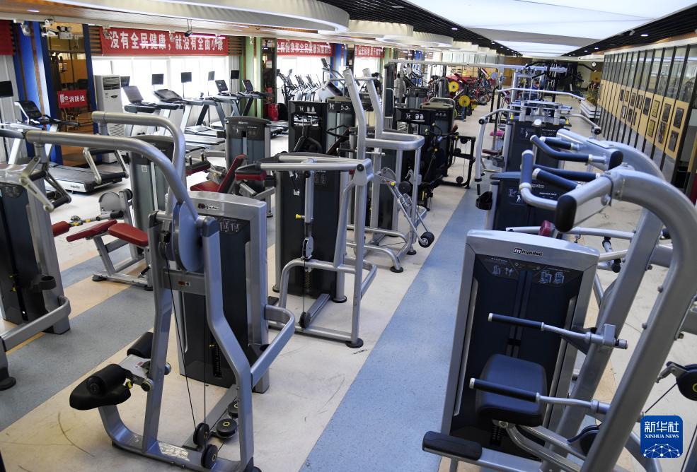 青島英派斯健康科技股份有限公司展廳內(nèi)展陳的各種健身器械(4月22日攝)。