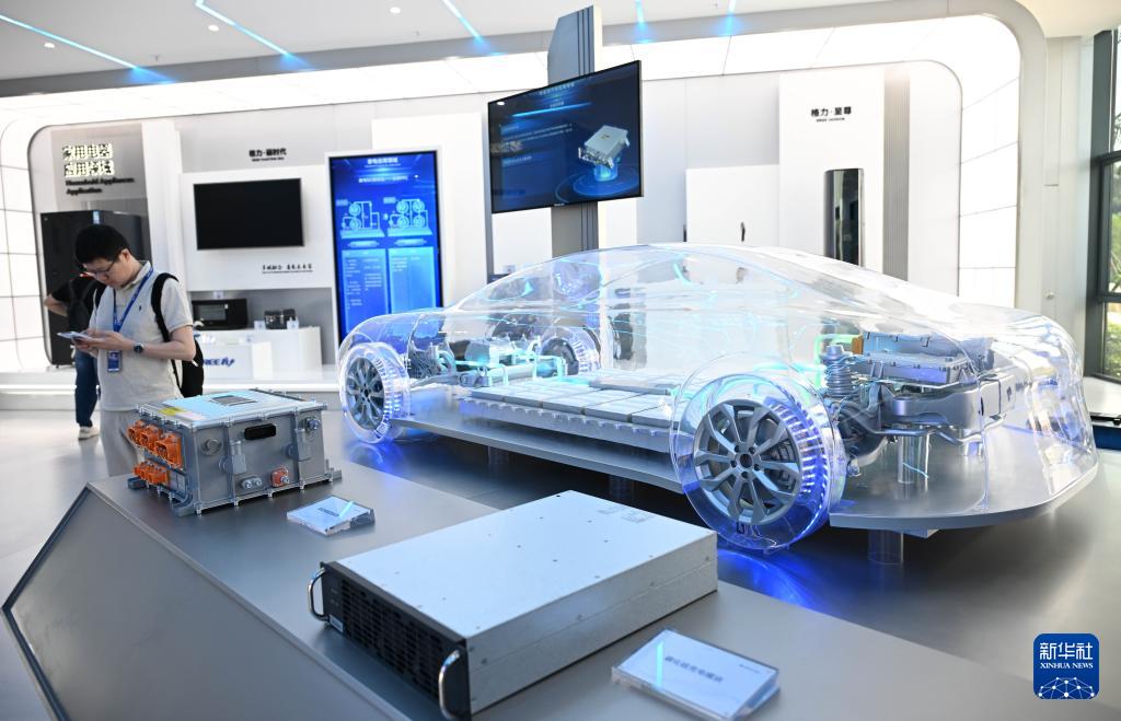 4月29日在珠海格力電子元器件有限公司拍攝的新能源汽車碳化硅充電模塊、驅(qū)動(dòng)電機(jī)控制器。