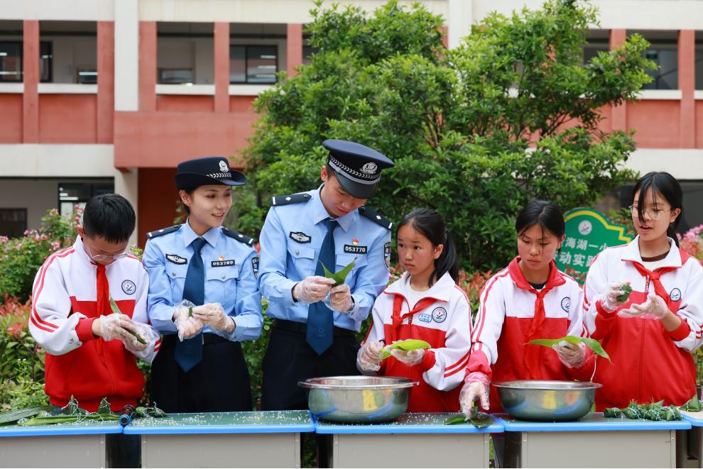 活動現(xiàn)場,民警與學(xué)生們圍坐在一起,手把手教孩子們包粽子。“粽葉要折成漏斗狀,米不能放太多,就像法律給我們的保護,既要周全也要適度。”民警一邊示范,一邊將民法典中與未成年人相關(guān)的條款融入講解。小小的粽子裹進了防霸凌、防溺水的小貼士,孩子們在體驗傳統(tǒng)文化的同時,潛移默化地學(xué)習了法律知識。