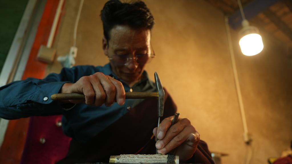青海玉樹(shù)安沖鄉(xiāng)的安沖藏刀制刀匠人江洛,從13歲起開(kāi)始學(xué)習(xí)制作藏刀。