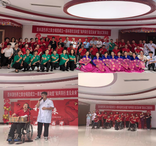 當(dāng)天,30余位合唱團成員用歌聲傳遞感恩與力量。在“和聲同行 愈見未來”周年聯(lián)歡活動現(xiàn)場,一曲曲《世界贈與我的》《南泥灣》《思念》等歌曲余韻悠長,每一個音符都凝聚著對黨的感恩、對政府關(guān)懷的深情告白。這不僅是一場匯報演出,更展現(xiàn)了工傷重癥失能人員積極向上的精神風(fēng)貌,有效促進了他們身心健康的全面提升,點亮了生活新色彩。