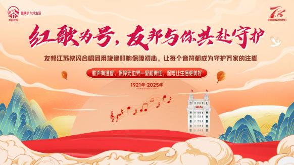活動(dòng)將紅歌快閃與友邦企業(yè)發(fā)展理念深度融合。紅色歌曲不僅是歷史的回響,更是激勵(lì)我們前行的動(dòng)力。一直以來(lái),友邦秉持“以客戶(hù)為中心”的理念,深耕健康、養(yǎng)老、財(cái)富管理等領(lǐng)域,為客戶(hù)提供全生命周期保障服務(wù)。2025年“7.8全國(guó)保險(xiǎn)公眾宣傳日”以“愛(ài)和責(zé)任,保險(xiǎn)讓生活更美好”為主題,強(qiáng)調(diào)保險(xiǎn)在促進(jìn)社會(huì)穩(wěn)定、增進(jìn)民生福祉中的重要作用。友邦江蘇通過(guò)紅歌快閃活動(dòng),將這一主題具象化為“守護(hù)”行動(dòng):一方面,通過(guò)紅歌傳遞團(tuán)結(jié)奮進(jìn)的精神力量,另一方面,以保險(xiǎn)服務(wù)筑牢民生保障底線。