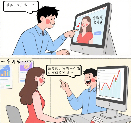 或通過婚戀交友平臺與個(gè)人確定婚戀關(guān)系,再以“內(nèi)部消息”“特殊資源”等誘騙個(gè)人參與投資,引導(dǎo)個(gè)人在偽造或仿冒的投資平臺進(jìn)行投資,并以小額投資返利作為誘餌,不斷引導(dǎo)個(gè)人加大資金投入,隨后迅速轉(zhuǎn)移資金。
