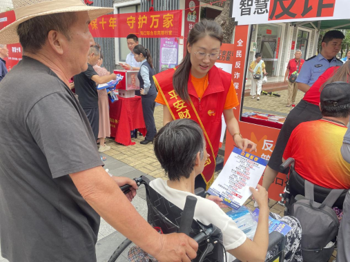 活動(dòng)當(dāng)天,現(xiàn)場(chǎng)洋溢著熱烈的紅色氛圍,精彩的文藝表演輪番上演,吸引了眾多居民駐足觀看。平安產(chǎn)險(xiǎn)海南分公司與平安銀行??诜中械闹驹感麄魅藛T在活動(dòng)現(xiàn)場(chǎng)特別搭建了“智慧反詐 平安守護(hù)”宣傳展臺(tái),通過擺放反欺詐、防范非法集資等宣傳折頁(yè),向過往群眾普及金融安全知識(shí)?;顒?dòng)還邀請(qǐng)到了轄區(qū)民警,為老年人講解防范詐騙的實(shí)用技巧,幫助他們提高警惕,遠(yuǎn)離詐騙風(fēng)險(xiǎn)。