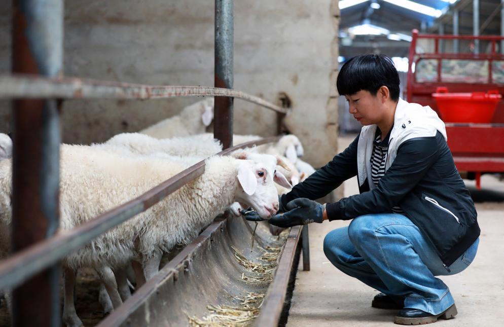在富民新村養(yǎng)殖區(qū)的養(yǎng)殖暖棚內(nèi),養(yǎng)殖戶蒲萬林在查看肉羊長勢。新華社記者 郭剛 攝