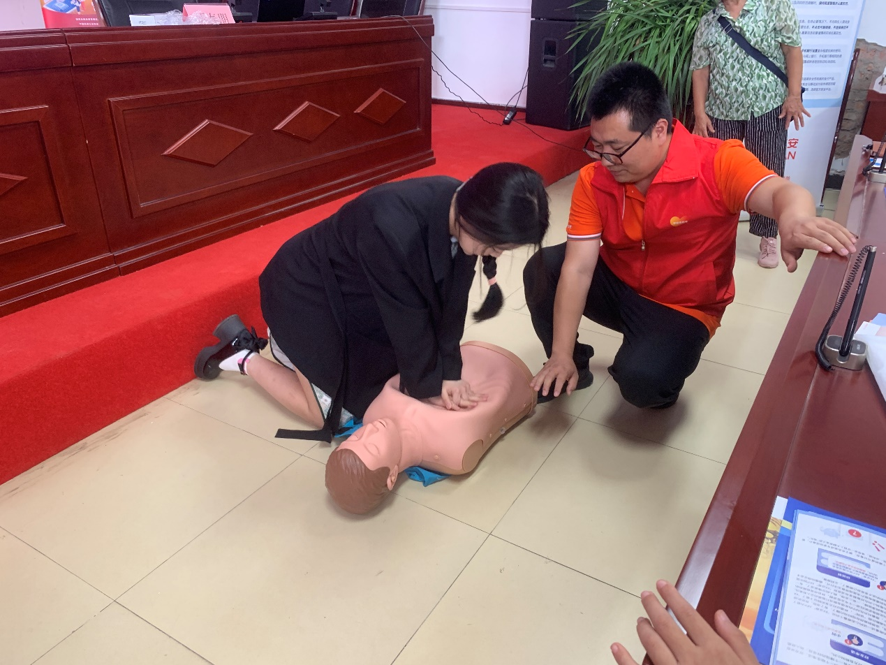 急救培訓(xùn)環(huán)節(jié)則采用“理論+實(shí)操”的沉浸式教學(xué)。志愿者采取了“講解+示范+實(shí)操”三步教學(xué)法,指導(dǎo)村民掌握心肺復(fù)蘇、創(chuàng)傷包扎等實(shí)用急救技能。通過實(shí)操演練讓村民掌握了基礎(chǔ)的急救技能。此外,活動(dòng)現(xiàn)場(chǎng)還設(shè)置了義診環(huán)節(jié),為村民提供健康咨詢,讓醫(yī)療服務(wù)更便捷地惠及基層民眾,切實(shí)體現(xiàn)了對(duì)居民身體健康的關(guān)懷與保障。