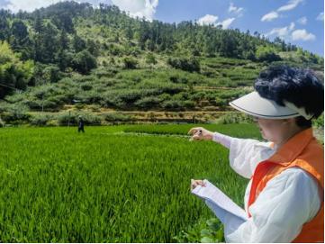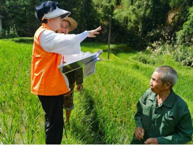 驗標(biāo)員曾燕玲的背包里,全縣農(nóng)險驗標(biāo)分布圖已標(biāo)注百余村落坐標(biāo)。密密麻麻的紅點(diǎn),對應(yīng)著數(shù)千塊分散田地的勘驗記錄。在熾烈的陽光下,灼熱的田埂仿佛要將鞋底融化。而她和農(nóng)險伙伴們依舊頂著烈日,每日步行超萬步,日均完成8個村莊的查勘驗標(biāo)工作。