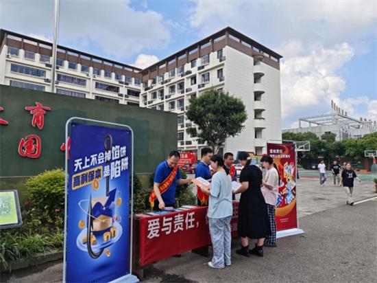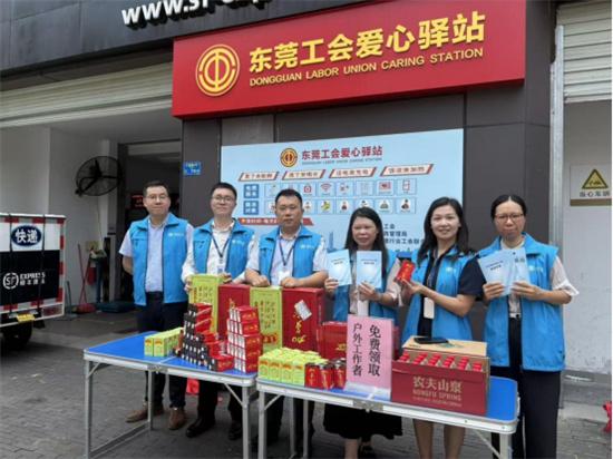 在東莞市匯峰中心,前海人壽東莞分公司的志愿者搭建起服務(wù)站點(diǎn),為環(huán)衛(wèi)工人、快遞員、外賣員等戶外工作者送上清涼飲品,同時(shí)結(jié)合宣傳材料講解電信詐騙手法和防范要點(diǎn),在送上夏日關(guān)懷的同時(shí)有效提升群眾金融風(fēng)險(xiǎn)防范意識。