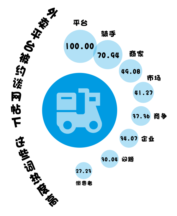 (數(shù)據(jù)來源:選取知乎話題“市場監(jiān)管總局等五部門約談京東、美團(tuán)、餓了么等外賣平臺企業(yè),釋放了什么信號?”下的659個(gè)回答,做分詞及歸一化處理,進(jìn)行分詞后將熱度最高的詞語規(guī)定為100)