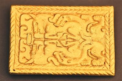 戰(zhàn)國時期虎馬咬斗紋金飾牌。 內(nèi)蒙古文物考古研究院供圖
