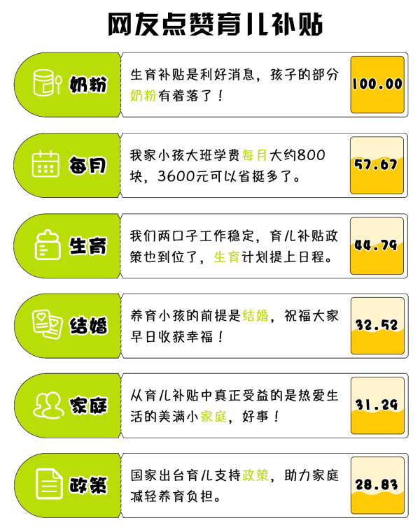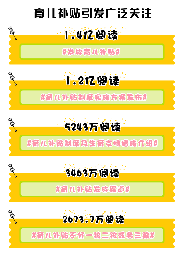 方案一經(jīng)發(fā)出,便迅速聚攏各方目光。“#發(fā)放育兒補(bǔ)貼#”“#育兒補(bǔ)貼制度實(shí)施方案發(fā)布#”相關(guān)微博話題,閱讀量均突破1.2億?!澳液⒆邮欠穹仙觐I(lǐng)要求”“您家孩子‘掙’到3600元了嗎”更成為了寶媽寶爸們?nèi)粘:训男聝?nèi)容。