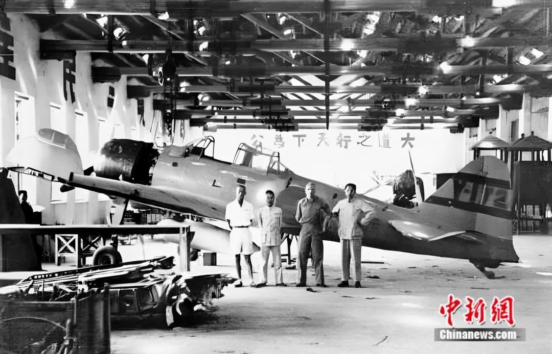 1942年,柳機(jī)工程師支援美國(guó)飛虎隊(duì)修理俘獲的日本零式戰(zhàn)斗機(jī)。劉麗虹提供