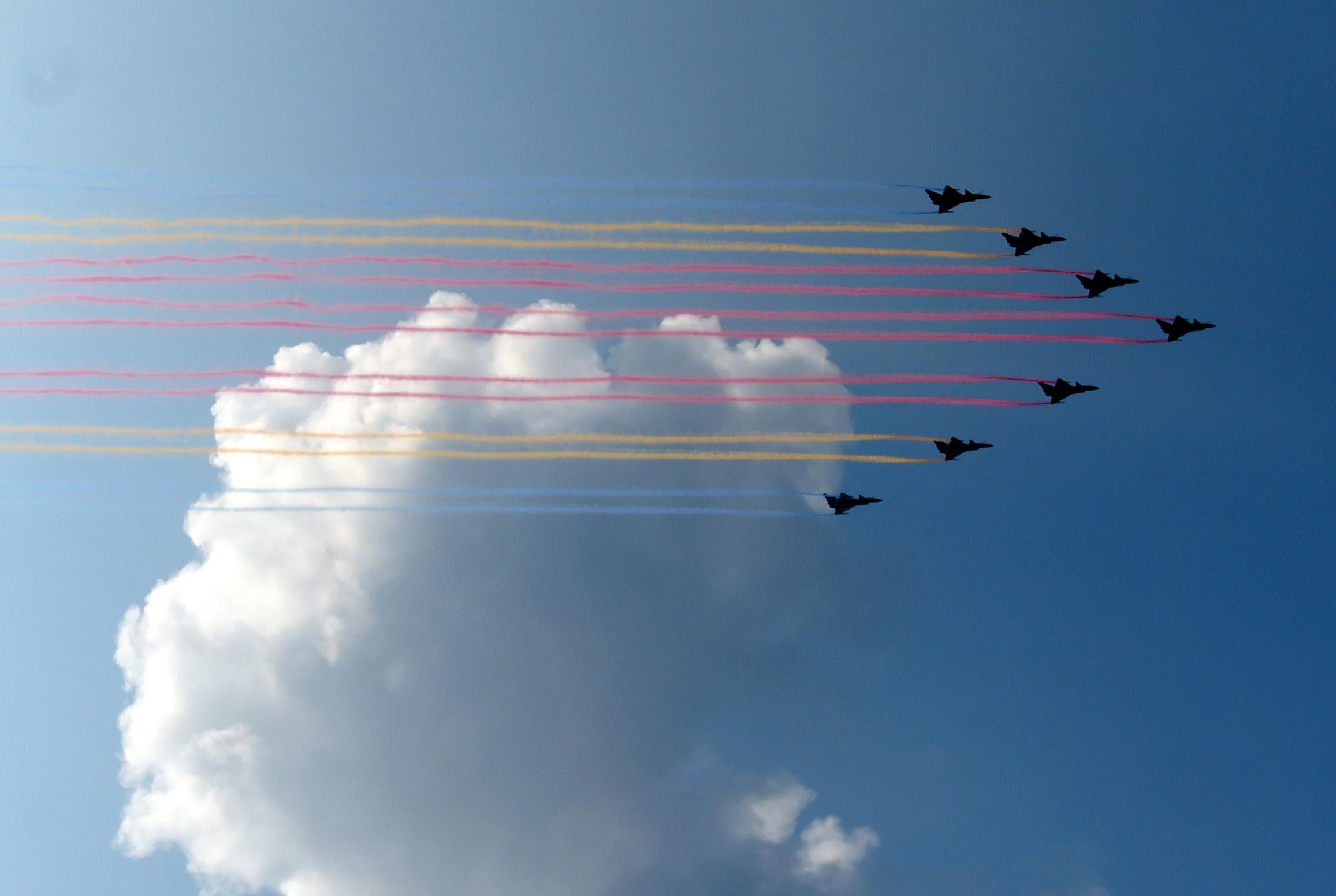 空中護(hù)旗梯隊率先亮相。