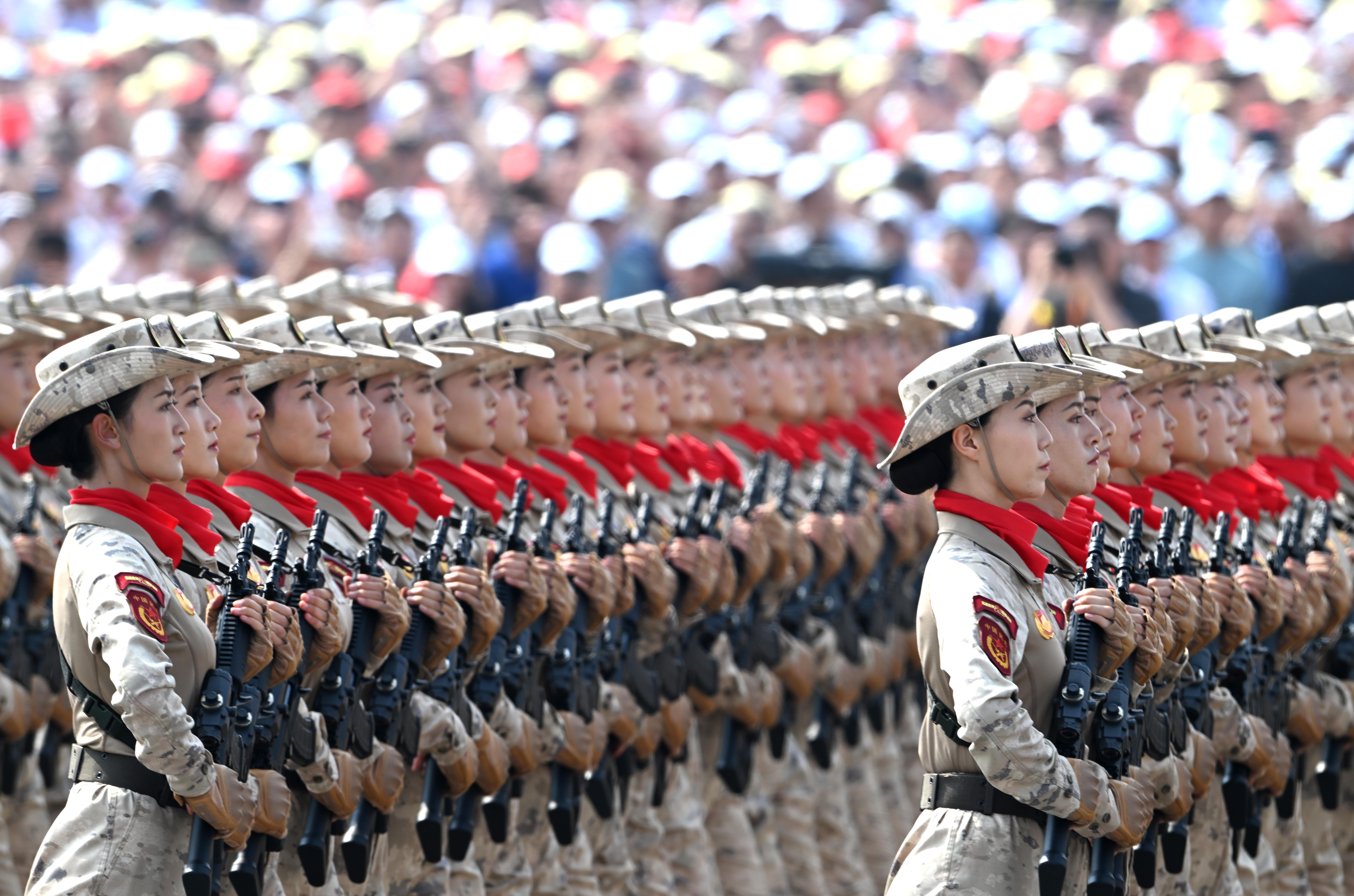 民兵方隊接受檢閱。