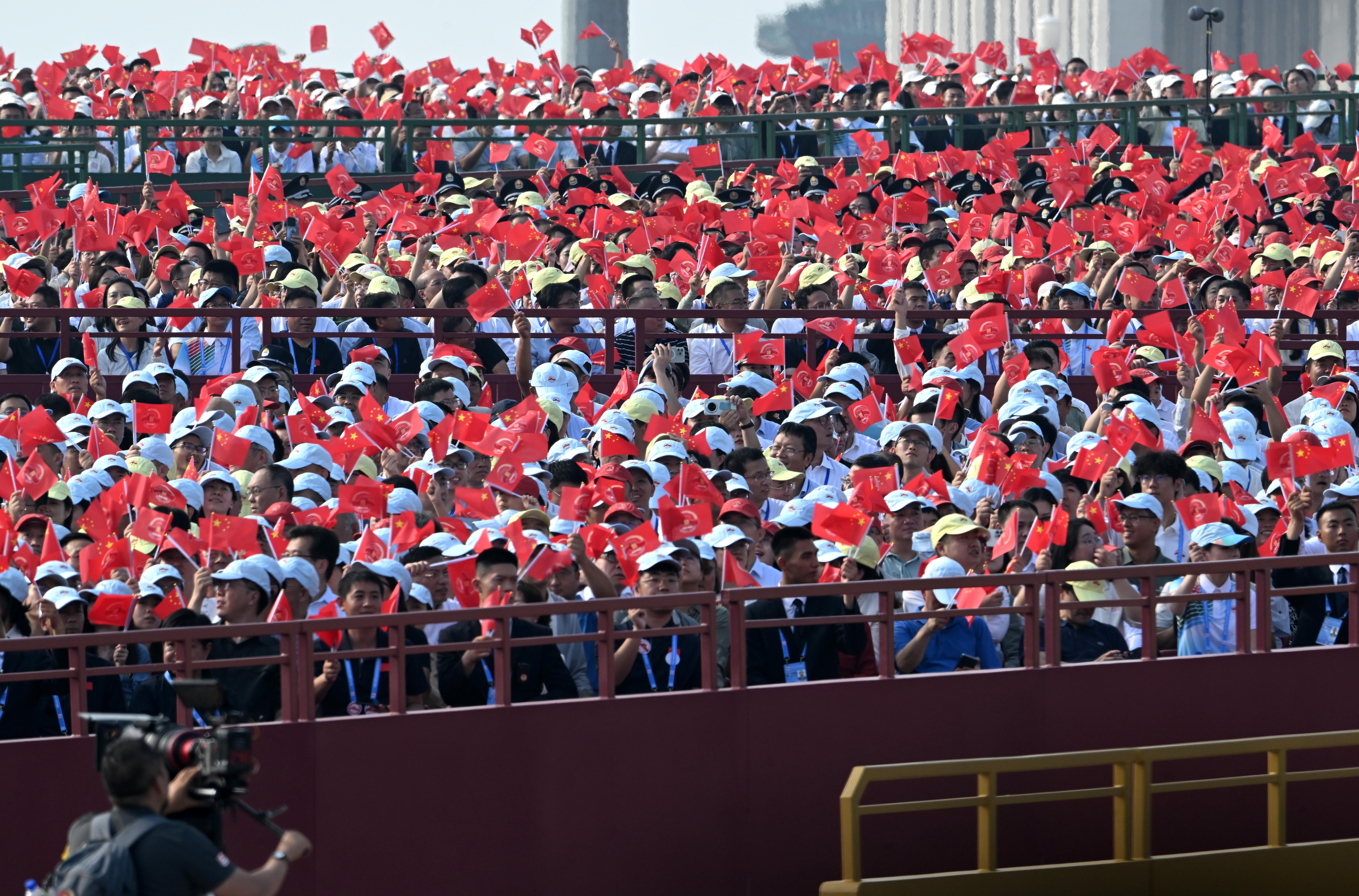 觀禮嘉賓揮舞旗幟。