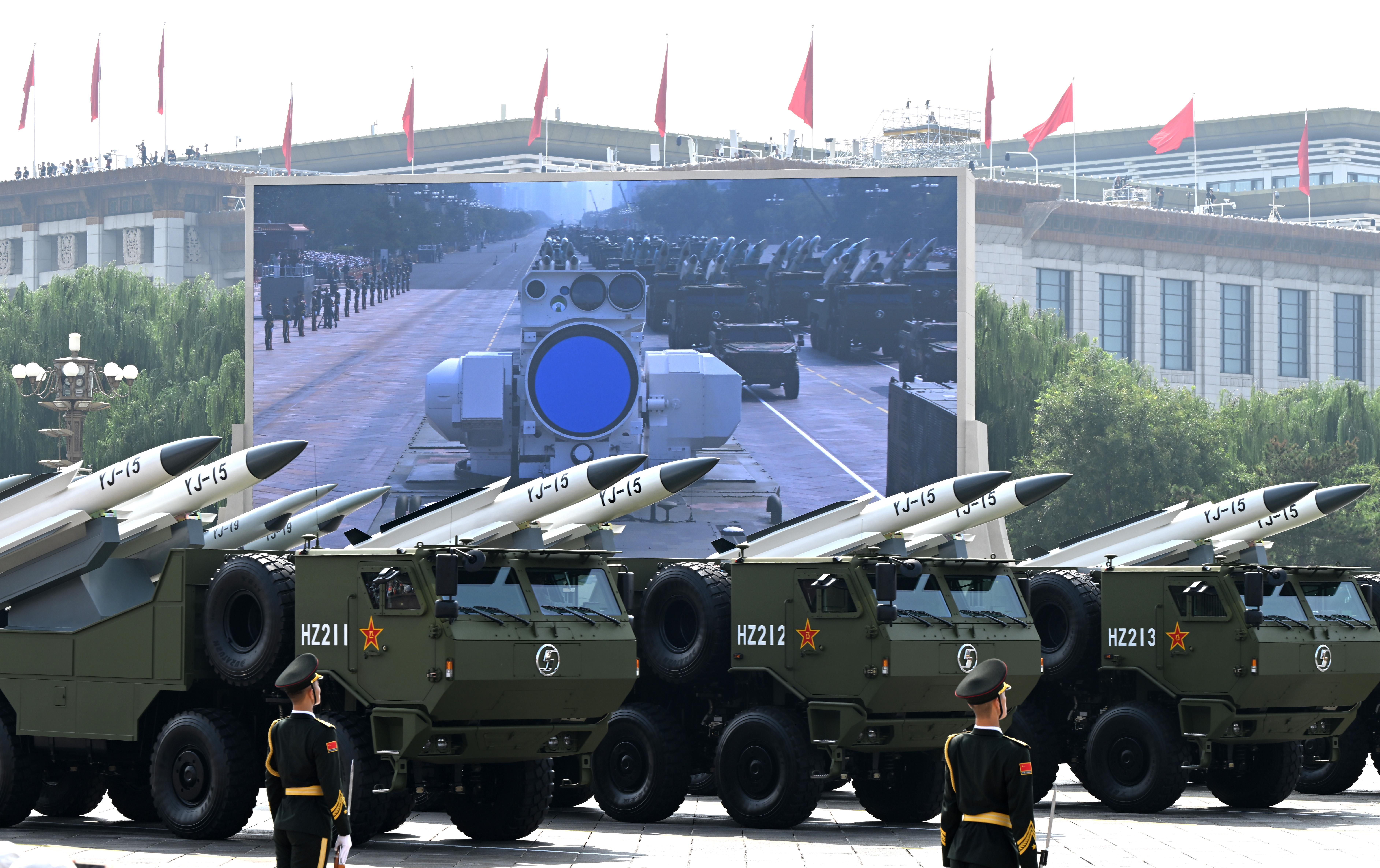 反艦導(dǎo)彈方隊接受檢閱。