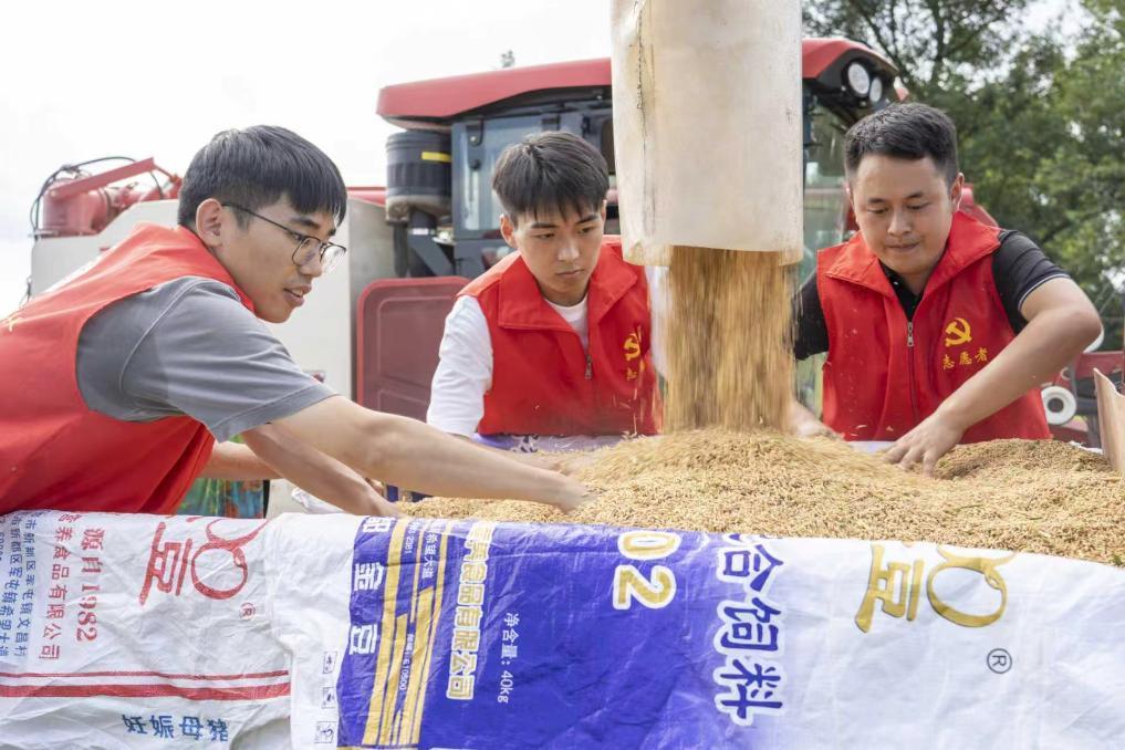 8月25日,蓬溪縣紅江鎮(zhèn)“紅色沖鋒隊”隊員助農(nóng)搶收。(受訪者供圖)
