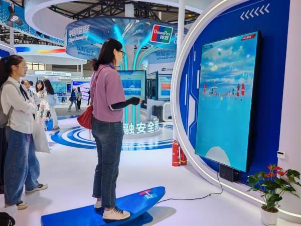 觀眾在展臺(tái)前積極參與網(wǎng)絡(luò)安全知識(shí)答題集章活動(dòng)