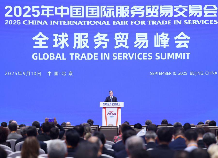 9月10日,2025年全球服務(wù)貿(mào)易峰會(huì)在北京舉行。中共中央政治局常委、國務(wù)院副總理丁薛祥出席峰會(huì)并發(fā)表主旨講話。新華社記者 丁林 攝