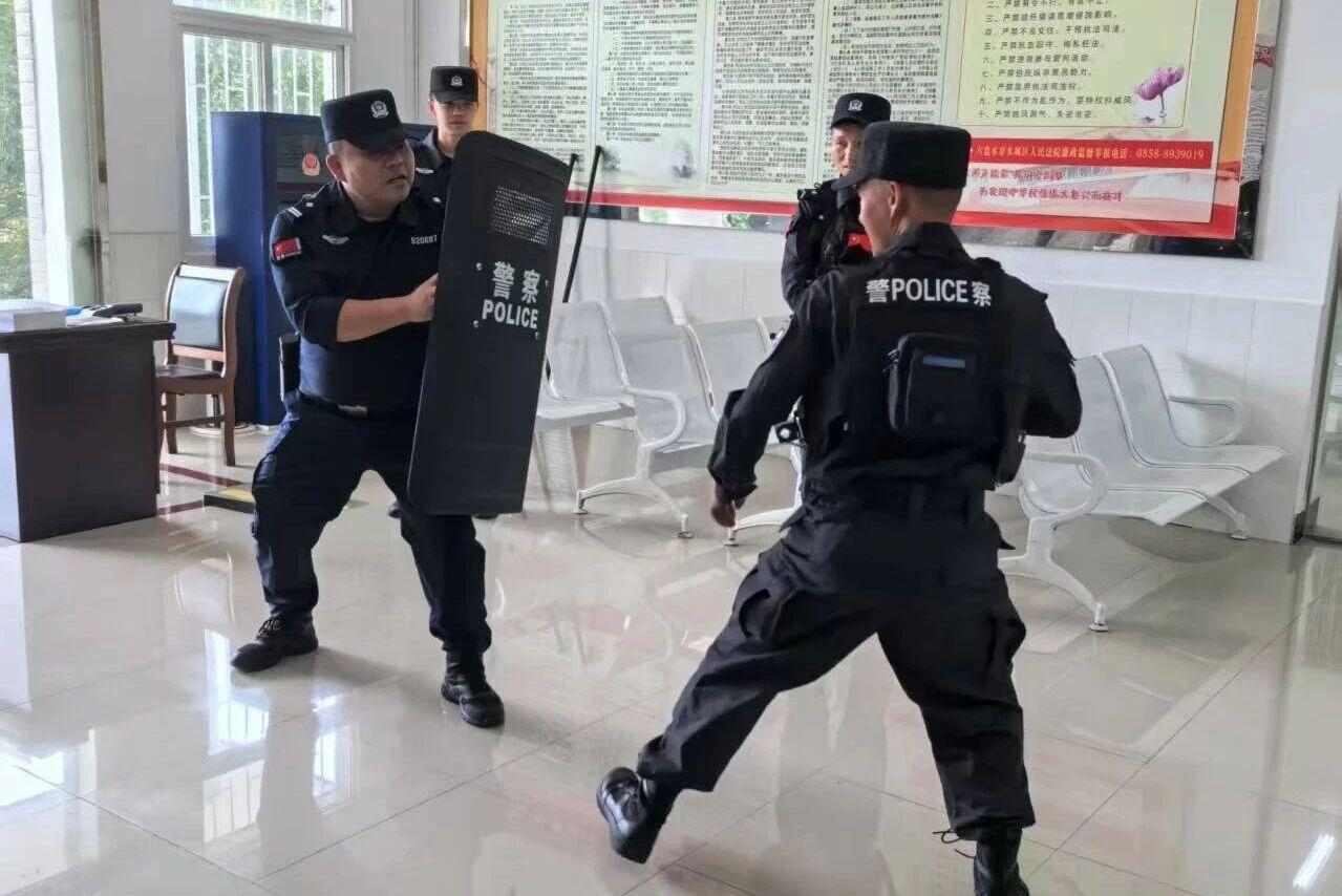 圖為水城法院組織法庭干警開展應急處突演練。