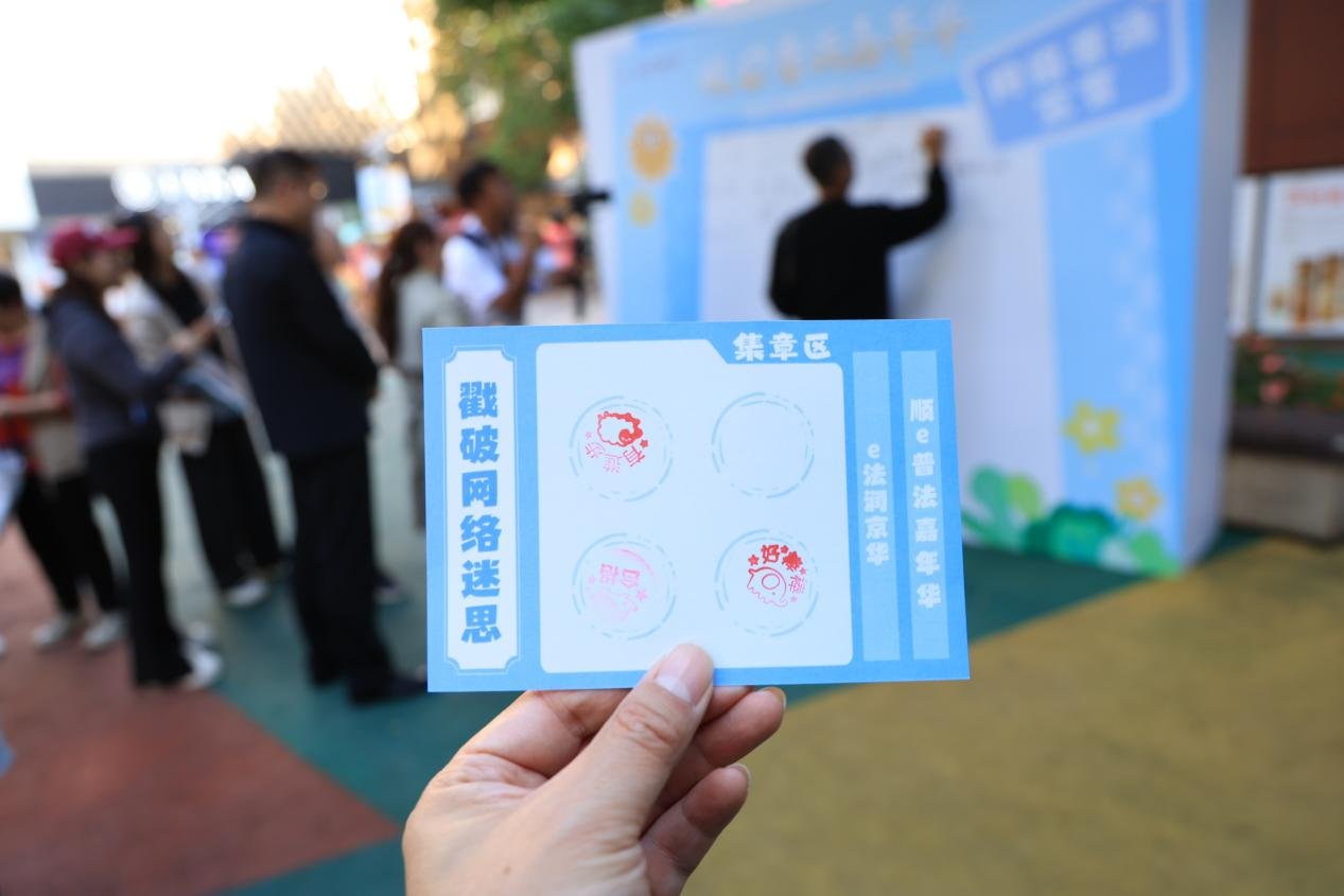 10月14日,“順e普法嘉年華”網(wǎng)絡(luò)普法活動在北京市順義區(qū)祥云小鎮(zhèn)文旅街區(qū)啟幕。“網(wǎng)購維權(quán)小屋”前,市民們正駐足答題;“法治飛行棋”區(qū)域內(nèi),游客們圍在彩色棋盤旁躍躍欲試。這場將網(wǎng)絡(luò)普法融入休閑生活的特色活動,讓法治知識悄然傳播。