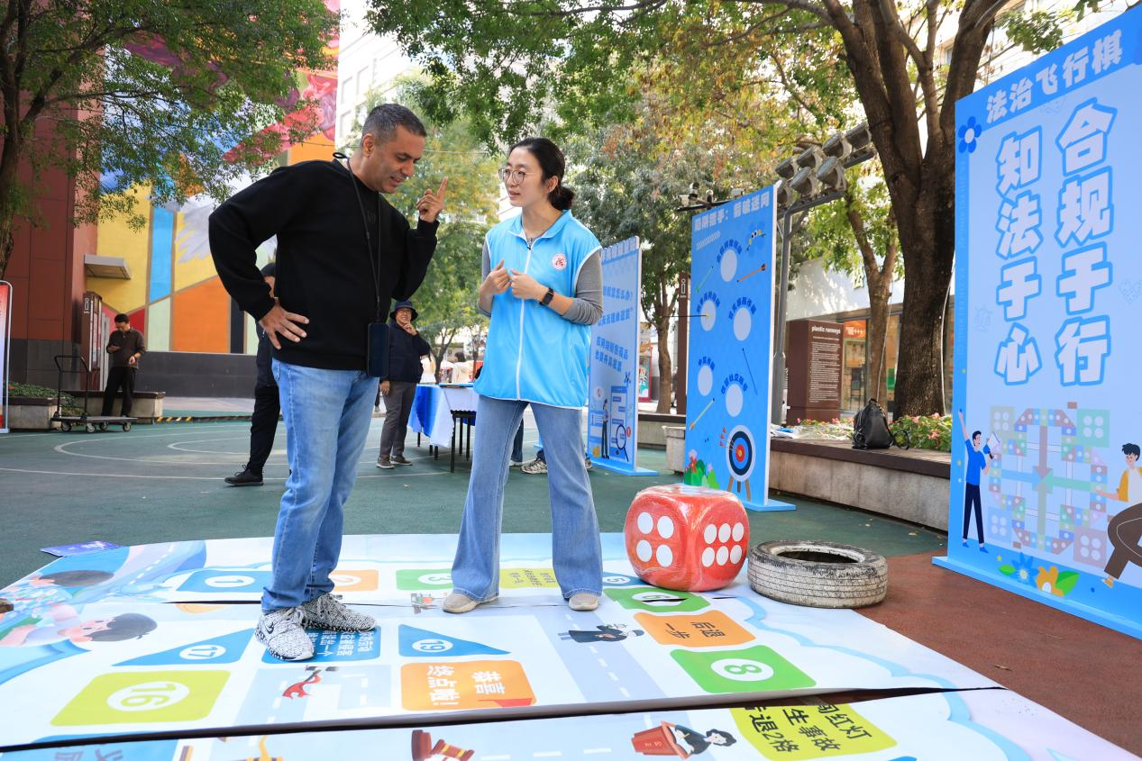 外籍居民參與“法治飛行棋”互動。王遠征 攝