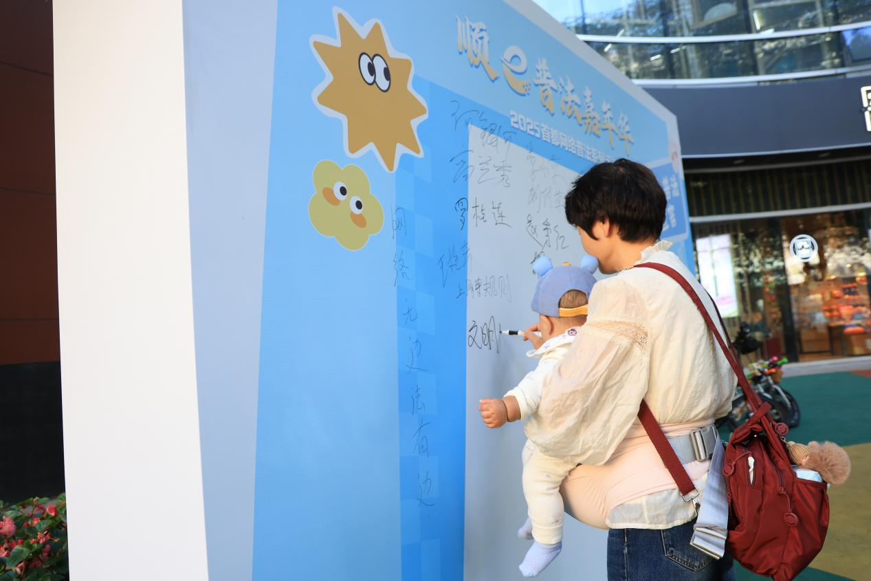 “e言e行皆風景,e舉e動講文明”“清朗網(wǎng)絡(luò)風,法治來護航”等一條條醒目標語在“網(wǎng)絡(luò)普法宣言”墻上漸漸被填滿,市民朋友們手持“e法潤京華”“順e普法嘉年華”主題KT板合影留念。在中國生活多年的外籍居民謝夫,特意趕來參與這場特別的“法治派對”,并在“網(wǎng)絡(luò)普法宣言”墻上寫下自己的名字?!斑@樣的活動很有意義,能讓更多人了解怎么依法上網(wǎng)?!敝x夫說。
