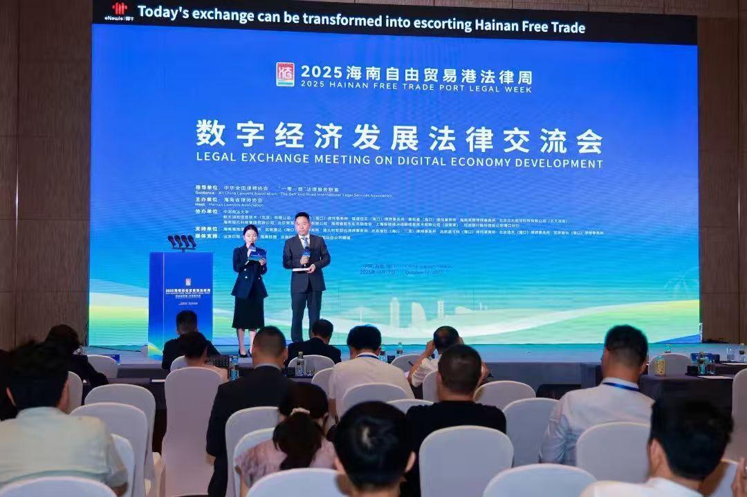 10月17日,2025海南自由貿(mào)易港法律周重要活動(dòng)之“數(shù)字經(jīng)濟(jì)發(fā)展法律交流會(huì)”在??谂e行。本次交流會(huì)聚焦數(shù)字經(jīng)濟(jì)浪潮下的法治保障議題,匯聚了學(xué)術(shù)界、法律實(shí)務(wù)界與國(guó)際相關(guān)領(lǐng)域?qū)<遥瑥娜蛞曇暗降胤綄?shí)踐,從技術(shù)賦能到法治保障,共同為海南自貿(mào)港數(shù)字經(jīng)濟(jì)的創(chuàng)新發(fā)展建言獻(xiàn)策。