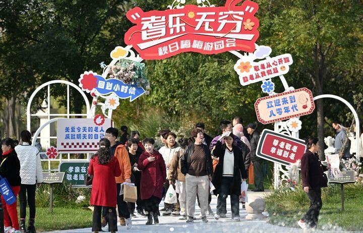 2025年10月22日,人們在天津市北辰區(qū)第二屆銀齡幸福月活動現(xiàn)場游園。新華社記者 李然 攝