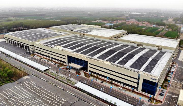 2025年4月17日拍攝的位于山東青島膠州市的海爾AI賦能多聯(lián)機互聯(lián)工廠(無人機照片)。新華社記者 李紫恒 攝