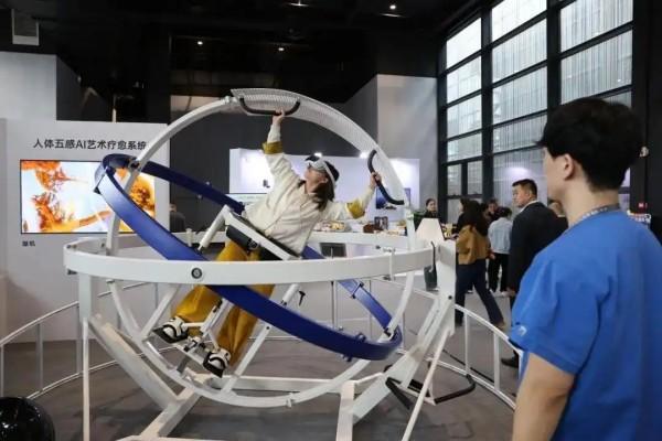 2024年“互聯(lián)網(wǎng)之光”博覽會(huì)上,觀眾體驗(yàn)人體五感AI藝術(shù)療愈系統(tǒng)。