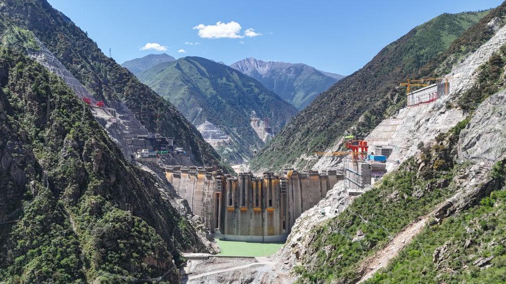建設(shè)中的葉巴灘水電站(2025年6月30日攝,無(wú)人機(jī)照片)。該水電站地處四川甘孜州白玉縣與西藏昌都市貢覺(jué)縣交界處的金沙江上游。新華社發(fā)(陳浩 攝)