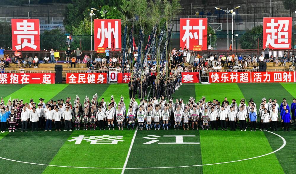 2025年8月23日,村民們在貴州“村超”球場演唱侗族大歌。當(dāng)日,2025年首屆“村超”全國賽總決賽在貴州榕江縣“村超”球場舉行。賽事期間同時(shí)舉辦豐富多彩的民族歌舞展演、無人機(jī)表演、大型煙花秀,吸引數(shù)萬觀眾現(xiàn)場觀賽。近年來,貴州“村超”“村BA”等草根賽事持續(xù)升溫,巧妙融合體育競技、民族文化與文旅消費(fèi),打造“體育+”模式,撬動鄉(xiāng)村流量與經(jīng)濟(jì)增量,賦能鄉(xiāng)村振興。