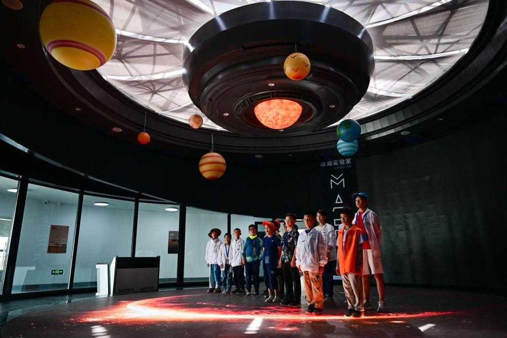 2025年7月29日,參加暑期研學(xué)的小朋友在青海省海西蒙古族藏族自治州冷湖鎮(zhèn)“冷湖實(shí)驗(yàn)室”學(xué)習(xí)天文知識。冷湖鎮(zhèn)曾是因石油而興、又因油盡而沉寂的工業(yè)遺址小鎮(zhèn)。然而,得天獨(dú)厚的地理?xiàng)l件,讓冷湖鎮(zhèn)成為理想的觀星地。近年來,當(dāng)?shù)匕l(fā)展科幻特色文旅,讓戈壁小鎮(zhèn)煥發(fā)新的生機(jī)。冷湖天文觀測基地引進(jìn)十余家科研單位的數(shù)十臺望遠(yuǎn)鏡,依托天文資源和戈壁奇景,打造火星實(shí)驗(yàn)室、黑獨(dú)山等“出圈”地標(biāo)。連續(xù)舉辦多屆的“冷湖科幻文學(xué)獎”,更讓這片土地成為科幻創(chuàng)作的新高地。冷湖鎮(zhèn)以科幻點(diǎn)亮文旅新場景,也為中國西北工業(yè)小鎮(zhèn)的轉(zhuǎn)型探索出一條充滿想象力的新路徑。