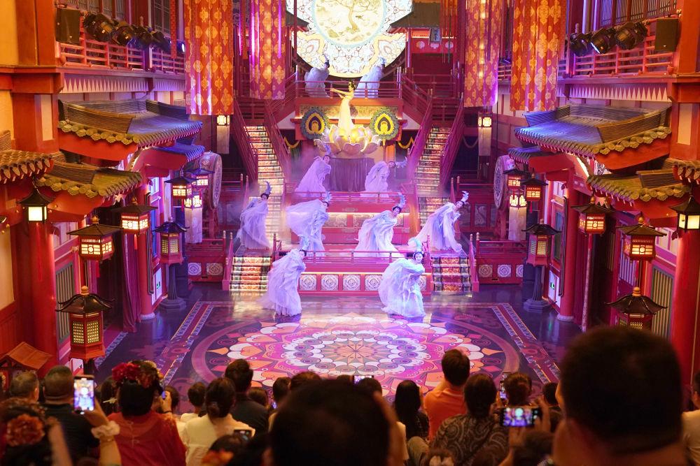 2024年5月19日,游客在西安長安十二時(shí)辰景區(qū)觀看表演《霓裳羽衣舞》?!伴L安十二時(shí)辰”主題街區(qū)將唐朝文化與現(xiàn)代旅游相結(jié)合,讓游客仿佛置身于千年前的長安城。近年來,西安積極推進(jìn)產(chǎn)業(yè)升級和文旅融合,以中華優(yōu)秀傳統(tǒng)文化創(chuàng)新創(chuàng)造活力助推經(jīng)濟(jì)社會高質(zhì)量發(fā)展,如大唐不夜城一樣火爆“出圈”的文旅項(xiàng)目層出不窮。