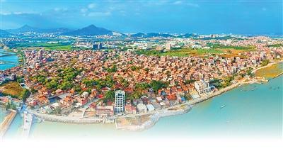若是從空中俯瞰福建泉州南安市石井鎮(zhèn)奎霞村,便會(huì)看見(jiàn)這樣迷人的風(fēng)景——一側(cè)是蔚藍(lán)的海水,一側(cè)是連棟成片的紅磚古厝,其間點(diǎn)綴青白色的石基、雪白的山花和綠色琉璃花飾,碰撞出一幅色彩鮮明的畫(huà)卷。2023年,奎霞村被列入第六批中國(guó)傳統(tǒng)村落名錄。