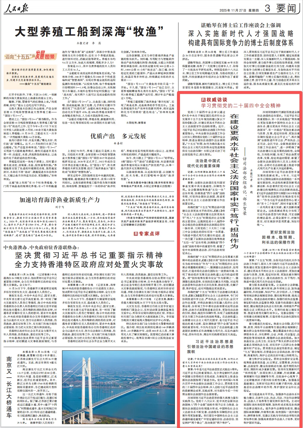 準(zhǔn)確把握“十五五”時(shí)期法治中國建設(shè)達(dá)到更高水平的目標(biāo)。《建議》將“社會(huì)主義法治國家建設(shè)達(dá)到更高水平”列入“十五五”時(shí)期經(jīng)濟(jì)社會(huì)發(fā)展的主要目標(biāo),這既同黨的十八屆四中全會(huì)提出的全面推進(jìn)依法治國總目標(biāo)一脈相承,又同黨的二十大和二十屆三中全會(huì)提出的目標(biāo)任務(wù)一體貫通,與推進(jìn)中國式現(xiàn)代化建設(shè)相適應(yīng),進(jìn)一步凸顯了全面依法治國在統(tǒng)籌推進(jìn)“五位一體”總體布局、協(xié)調(diào)推進(jìn)“四個(gè)全面”戰(zhàn)略布局中的重要作用,彰顯了黨中央接續(xù)推進(jìn)法治、厲行法治的堅(jiān)定決心。