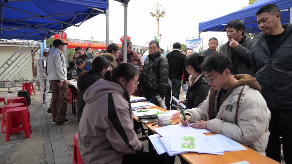 在云南省昭通市鎮(zhèn)雄縣,當(dāng)?shù)貫槿罕姶罱ㄆ鸺议T口就業(yè)的便捷平臺(tái)。招聘會(huì)現(xiàn)場(chǎng)設(shè)置了企業(yè)展示與崗位咨詢區(qū),還組織求職者到工廠參觀廠區(qū)環(huán)境,幫助求職者直觀了解工作內(nèi)容。
