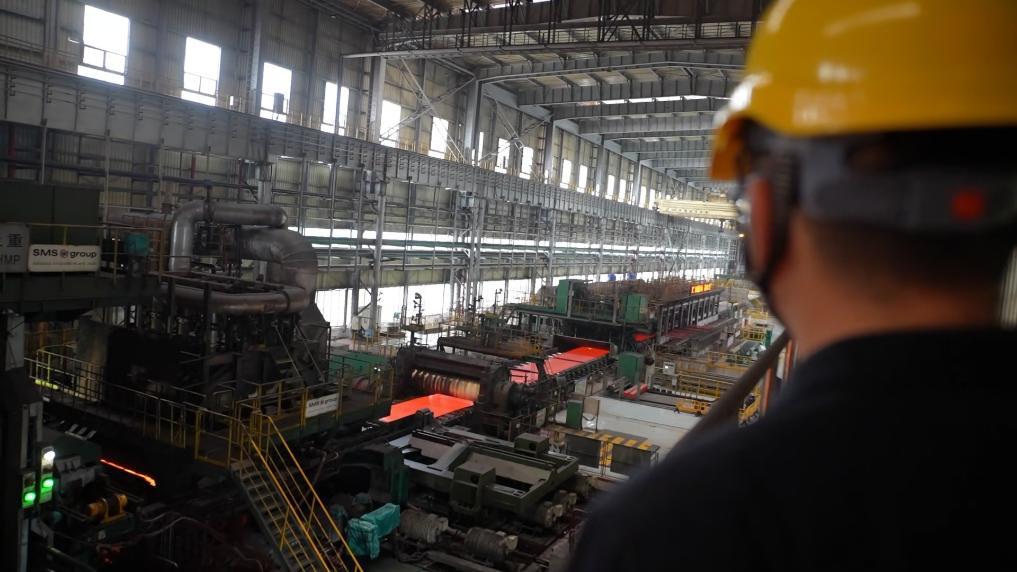 在山東鋼鐵集團(tuán)日照有限公司中厚板廠爐卷熱軋作業(yè)區(qū),一塊厚達(dá)150毫米的通紅鋼坯穿過軋機(jī),經(jīng)過一系列精密控制,如同“攤煎餅”般制成寬3250毫米、厚3.5毫米的超大寬厚比中厚板。