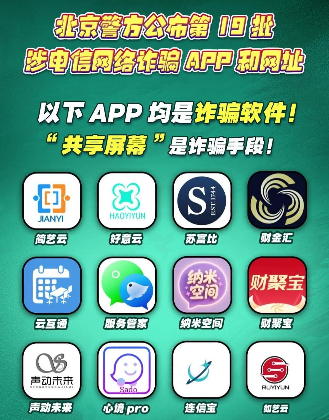 北京警方公布第19批涉電信網(wǎng)絡詐騙APP和網(wǎng)址