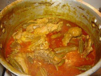 秋葵醬(Sauce Gombo),這可能是當?shù)刈钍⑿械尼u汁了。下圖是這是在我一個同事家拍的,他把肉和魚都混到一起了,實在是有點不堪。