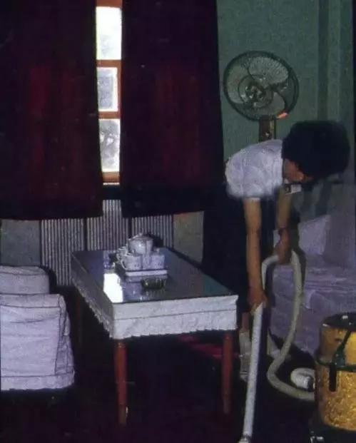 服務(wù)員在為房間清理衛(wèi)生,吸塵器清理地毯。那時候這家旅店的服務(wù)員都是國營職工,不像現(xiàn)在多是臨時工或者鐘點工。