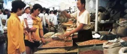 當(dāng)年北行農(nóng)貿(mào)市場賣熟食的攤位,攤位前那個小朋友戴著的帽子應(yīng)該是那個年代孩子們比較時髦的物件。