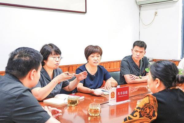“共享法庭不僅是一個(gè)物理空間,更是一個(gè)制度、一份理念;庭務(wù)主任也不只是一個(gè)職務(wù),而是一種氛圍、一份行動(dòng)?!睏顕?guó)琴有自己的理解,“共享法庭就是讓越來(lái)越多人參與到普法、知法、懂法、守法的氛圍里。我特別想在‘家門口’帶動(dòng)這樣的法治氛圍?!保ㄓ嘟ㄈA 潘墨欽)