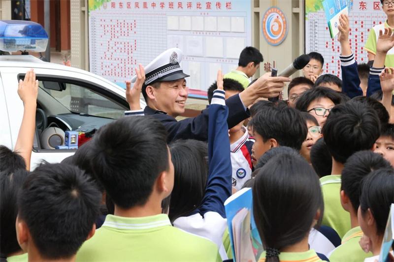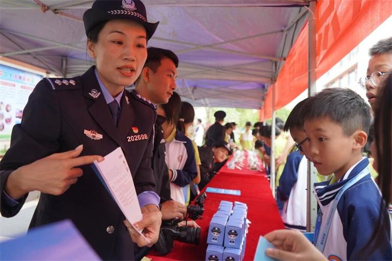 課室外,多部門聯(lián)合打造的“法治移動課堂”同步鋪開,形成全方位普法矩陣。在仿真毒品展示區(qū),禁毒民警結(jié)合新型毒品模型,揭露“跳跳糖”“奶茶粉”等偽裝手段,深刻警示學(xué)生警惕“第一口”誘惑;交警部門將流動宣傳車開進操場,循環(huán)播放本地交通事故警示片,血淋淋的案例讓圍觀學(xué)生直呼“安全帶就是生命帶”?!?/p>