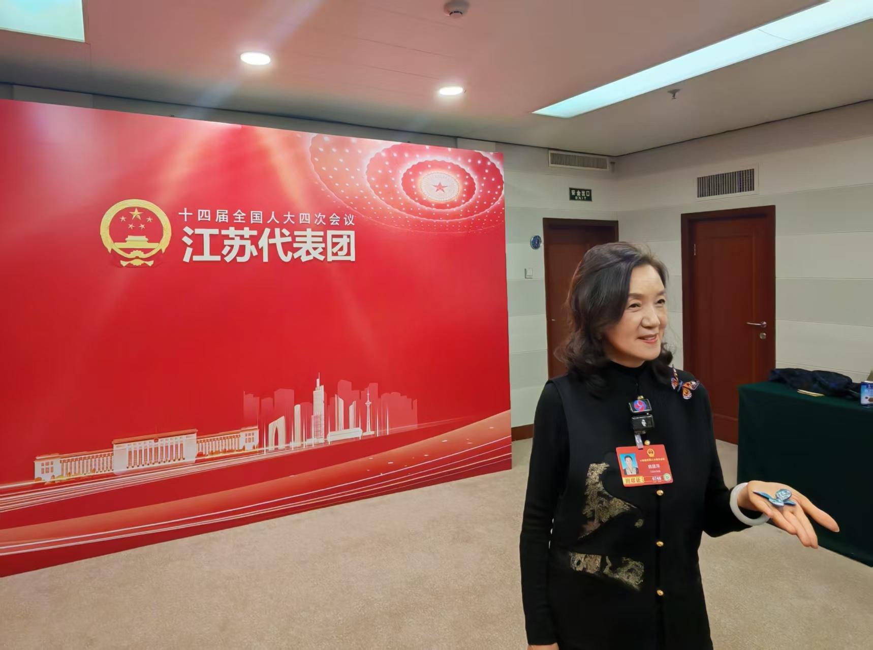 “這枚胸針,是法國設(shè)計師和我們團隊共同創(chuàng)作,用蘇繡、珠寶和現(xiàn)代工藝設(shè)計而成?!?月7日晚,在全國兩會江蘇代表團駐地,全國人大代表,蘇州高新區(qū)鎮(zhèn)湖刺繡研究所藝術(shù)總監(jiān)姚建萍向《法治日報》全媒體記者展示了一枚精美的蝴蝶胸針。這只蝴蝶,正是她推動非遺“年輕化、時尚化、國際化”的縮影。